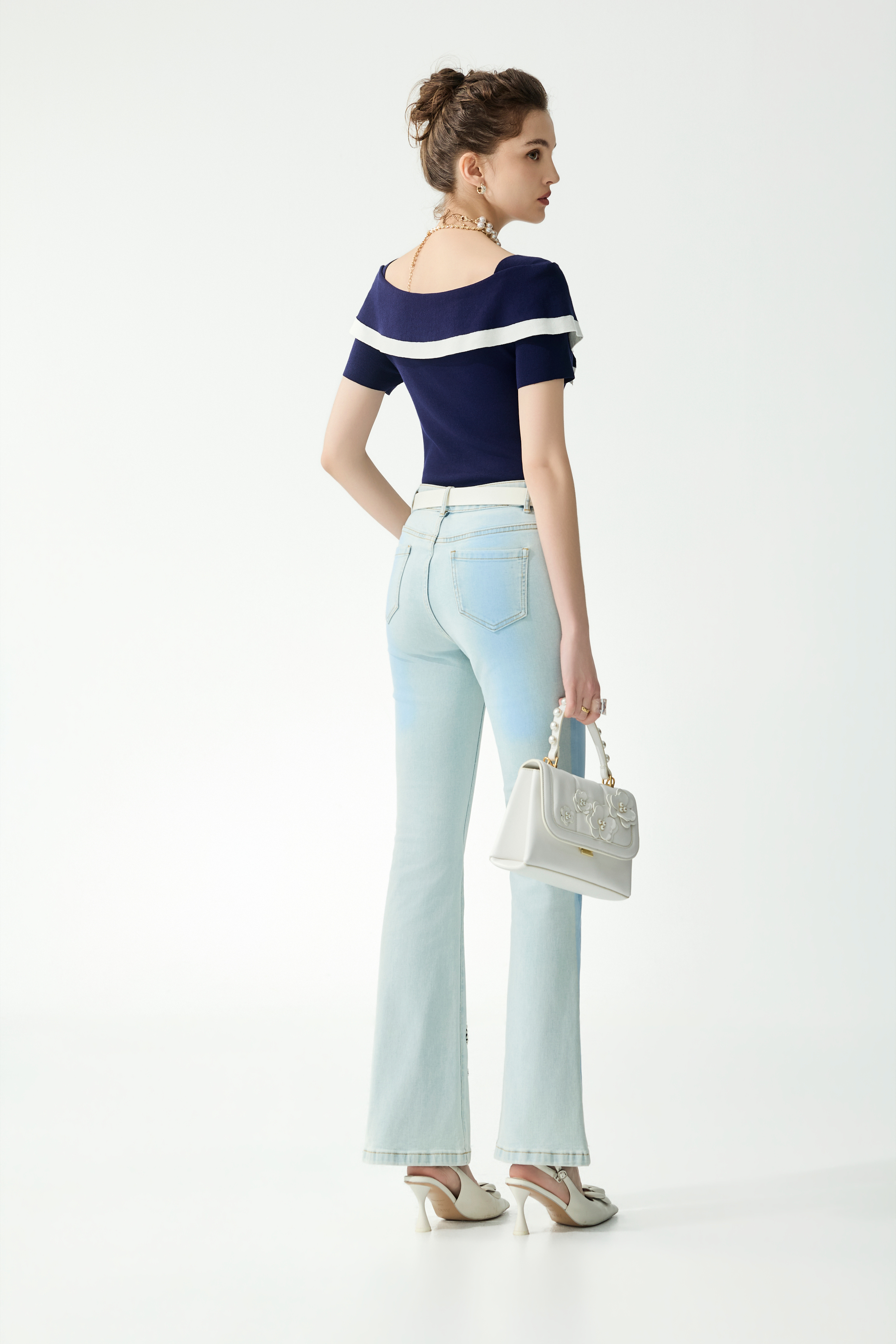水手領元素針織上衣、綴織帶船錨牛仔喇叭褲