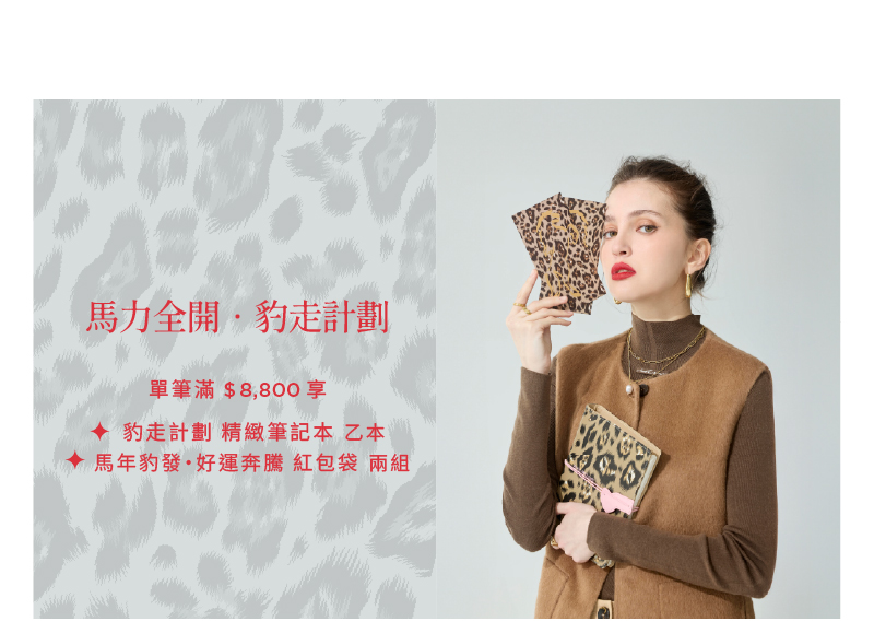 在象徵力量與奔騰的馬年, iROO 嶄新演繹時尚王者風範,將經典印記美學融入至臻禮遇以豹紋、大花、圓點,打造最精緻的生活儀式感。