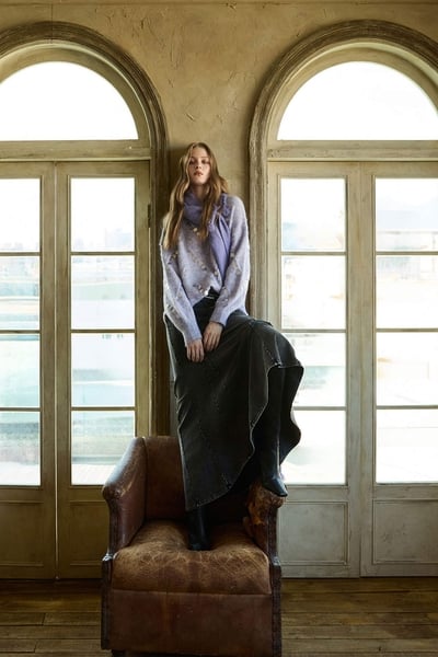 圓領連帽長袖夾克式針織外套,流行薄暮灰色。前中拉鍊閉合。