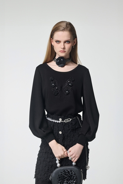 蝴蝶圖騰領巾式絲棉上衣