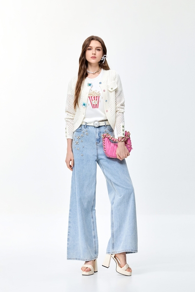 小香風格紋亮片牛仔外套