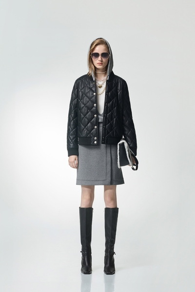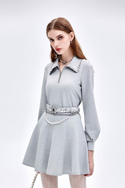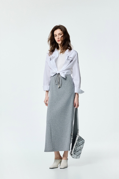 港霧灰魚鱗褶壓褶長裙