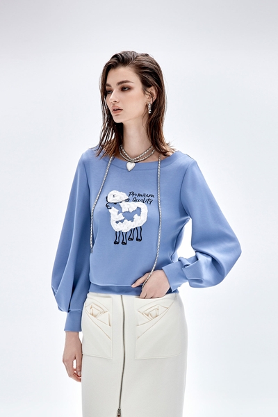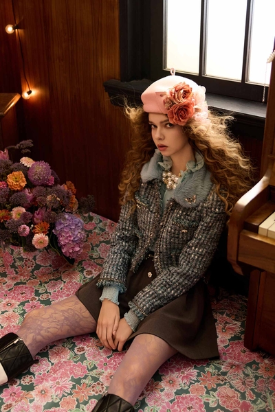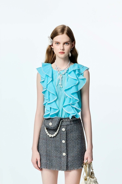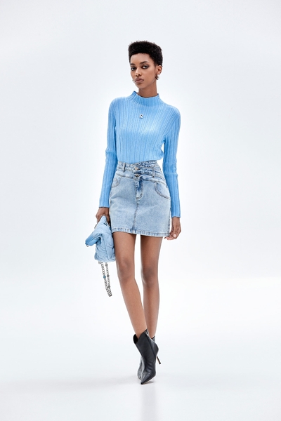 珍珠藍復古洗水百褶裙