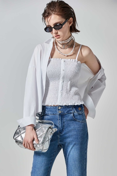 細帶綁染感印花lace背心