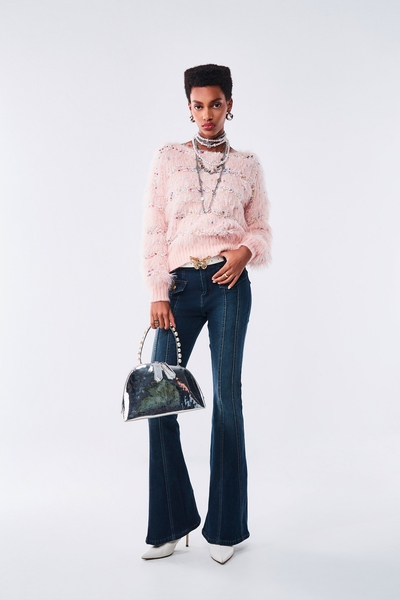 海洋洞穴色拼接配色造型上衣