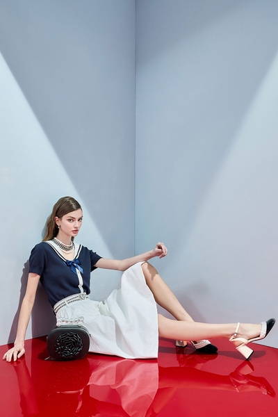 光學白撞色收邊上衣