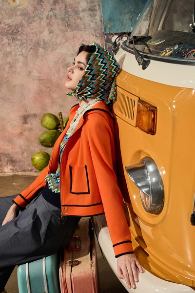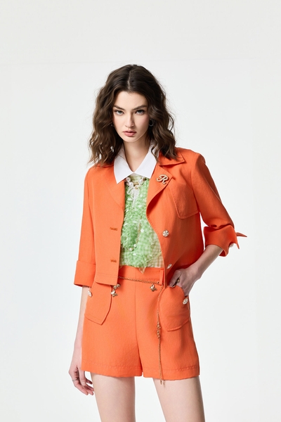 螢光耀火色綁帶上衣