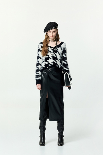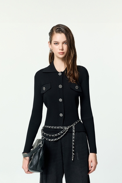 壓摺波浪荷葉背心針織