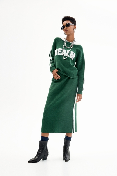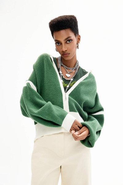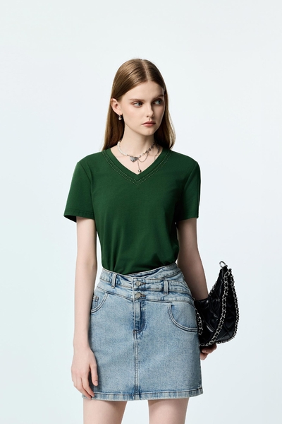 高山綠坑條拉鍊短袖上衣