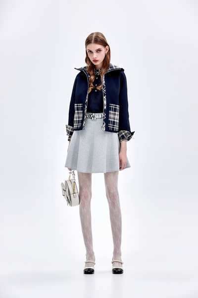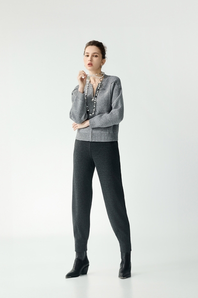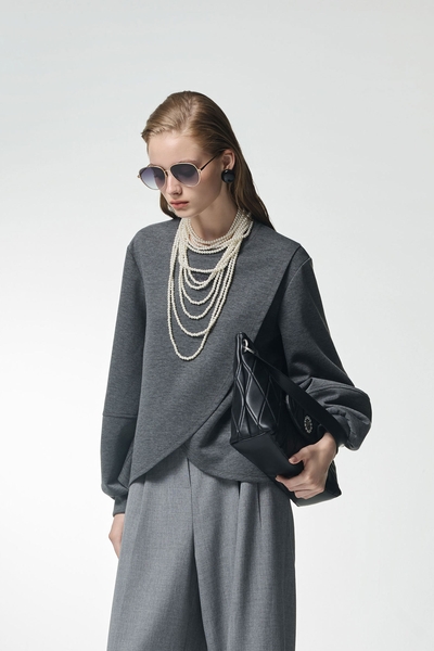 港霧灰絲棉抓褶上衣