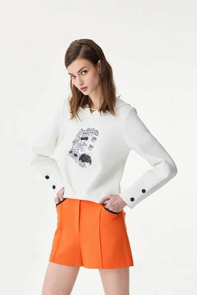 撞色刺繡偽T恤上衣