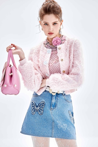 珍珠藍漸層染針織上衣