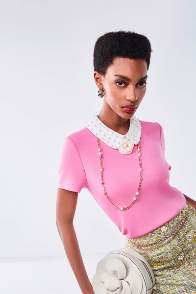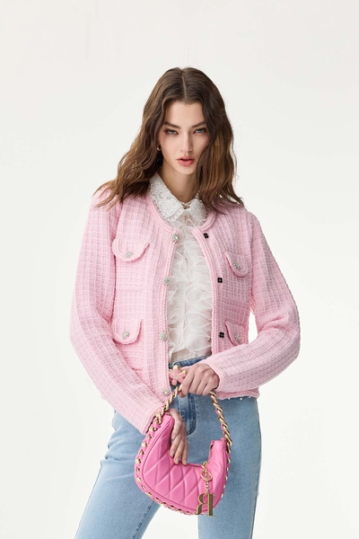 綴小腰包奢華粉百摺裙