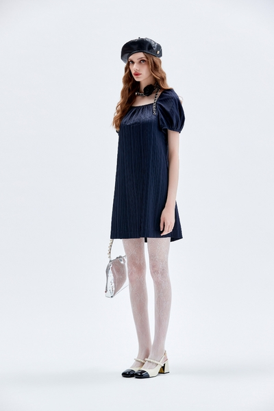 暮色藍手工花短裙