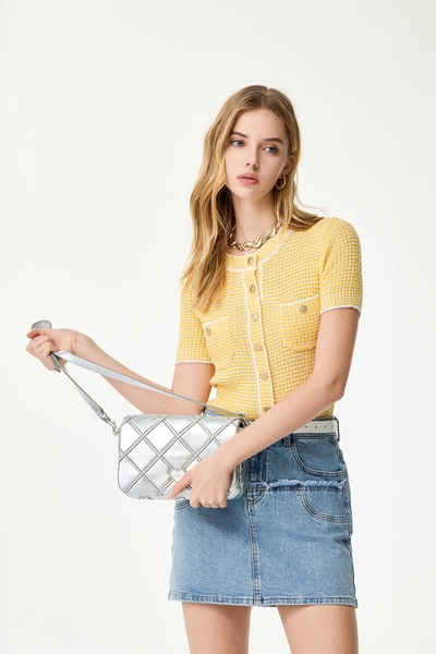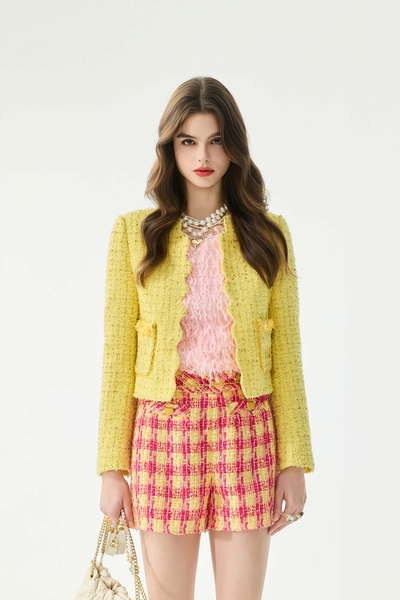 金菊亮黃色花呢紗短褲