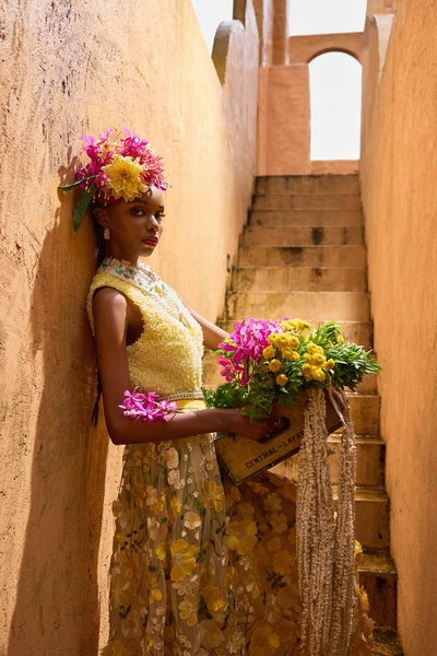 熱帶花卉刺繡洋裝