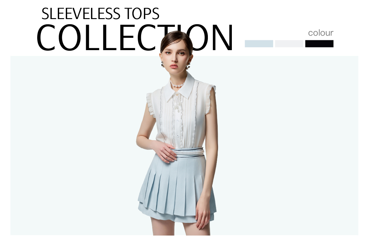 無袖上衣/背心系列推薦:iROO 無袖上衣與背心系列,強調實穿與造型兼具的設計巧思,無論是經典素色款、帶有蕾絲或織紋細節的時尚款,還是剪裁俐落的馬甲式背心,都能為日常穿搭注入品味與風格。可單穿於炎熱天氣中清爽有型,也能在涼爽季節搭配外套、罩衫或針織衫,打造多層次的輕奢時尚造型,展現女性柔美又自信的氣場。